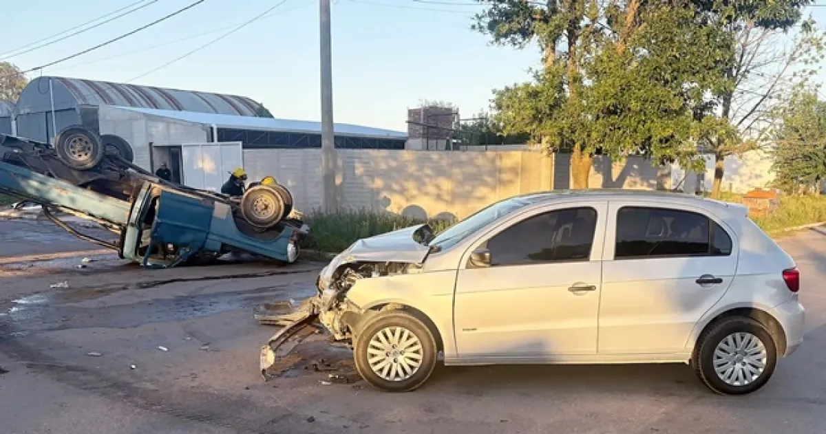 Un auto y una camioneta chocaron en una esquina y el segundo de los vehículos quedó con las cuatro ruedas hacia arriba. Afortunadamente, no hubo personas...